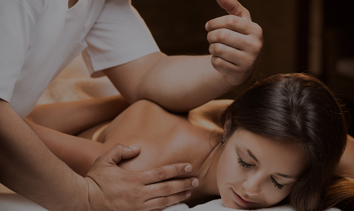 Applying sustained pressure using slow, deep strokes to target the inner layers of your muscles. The therapist uses hands, thumbs, and elbows.
